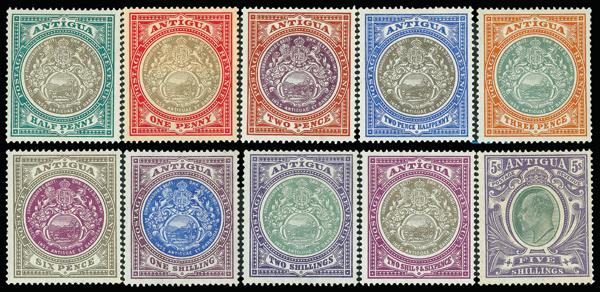 1903-09, Seal of the Colony & King Edward VII, ½d to 5sh complete, Crown CC watermark (Scott 21-30), set of 10, complete set of singles, o.g., hinged, Fine to Very Fine. SG 31/40. Scott $389. (Image)