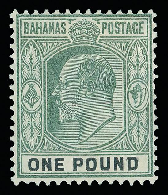 1902, King Edward VII, £1 green & black (Scott 43), single, o.g., hinge remnant, Fine. SG 70. Scott $325. (Image)
