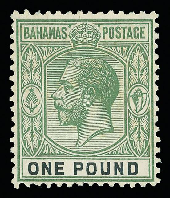 1912, King George V, £1 dull green & black (Scott 56), single, o.g., lightly hinged, Fine. SG 89. Scott $250. (Image)