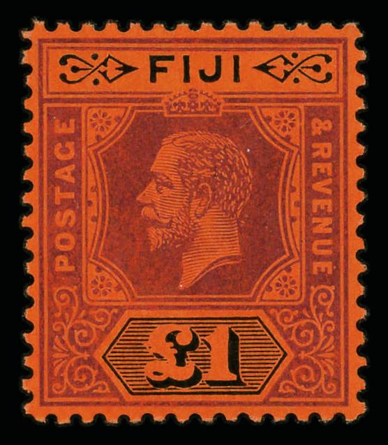 1914, King George V, £1 purple & black on red (Scott 41), Multiple Crown CA watermark, single, o.g., small hinge remnants, Fine to Very Fine. SG 38. Scott $275. (Image)