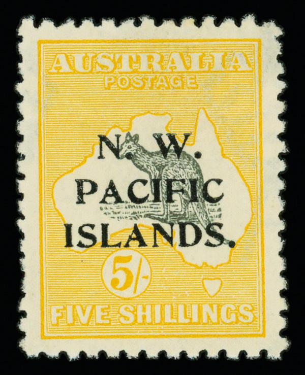 1915, Kangaroo and Map, 5s gray & yellow (Scott 22), 2nd watermark, single, o.g., never hinged (album adherence), Very Fine. SG 92. Scott $83. (Image)
