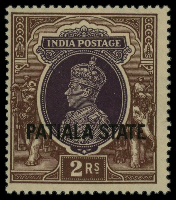 1938, King Geiorge VI 2r dark brown & dark violet overprinted Patiala State (Scott 93), single, o.g., never hinged, Fine to Very Fine. Scott $180. (Image)