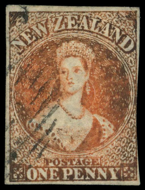 1862, Queen Victoria "Chalon Head", 1d orange vermilion, imperf (Scott 11), Large Star watermark, Fine to Very Fine. SG 33. Scott $275. (Image)