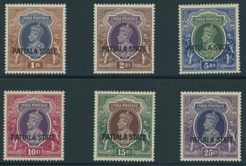 India. Patiala State. 1937-38 group of High Values (6) comprising 1r. to 25r. unmounted mint; very fine and fresh. S.G. 92-97, £560+ (Image1)