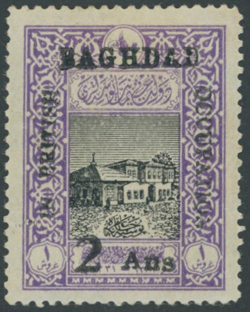 Iraq. Issues for Baghdad. 1917 (1 Sept.) 2a. on 1pi. violet and black, large part original gum, expertising handstamps on the reverse; fine. P.f Certificate (1979). S.G. 11, £900 (Image1)