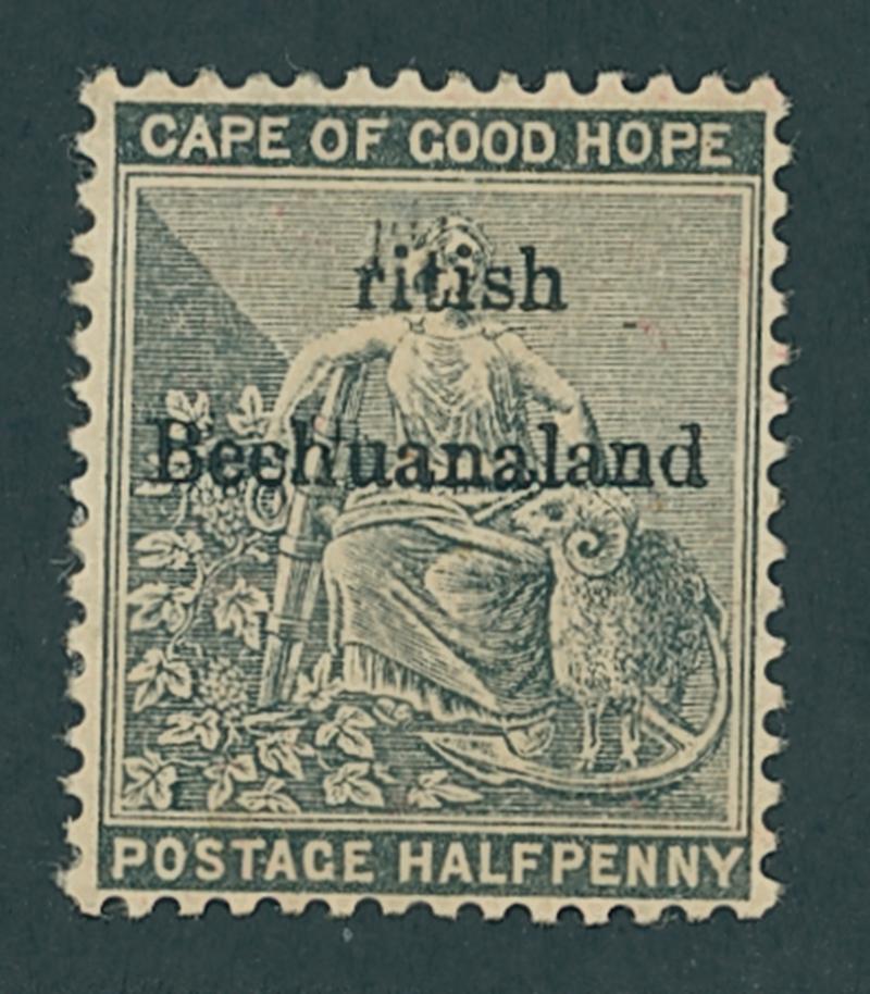 Bechuanaland. British Bechuanaland. 1885-87 Anchor ½d. grey-black, variety 'ritish' for 'british', part original toned gum; a very rare variety. B.P.A. Certificate (2015). S.G. 4a, £2,750 (Image1)