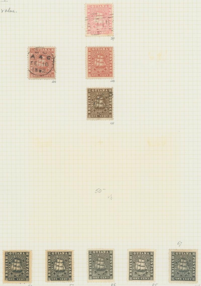 Ceylon. Collection of chiefly Chalon head type on pages, including 1835 mourning envelope to London, 1857-59 imperf. 1d. (7 with unused pair), 2d. (9), 4d., 5d. (2), 6d. (12), 10d., 1/- (3), 1/9d., 2/-, 1857-64 imperf. ½d. (7), perf. ½d. (10), a fine range of the perforated Chalon head types with perfs., watermarks, Proofs, Forgeries (including the Jeffries 1/9d. die Proof), etc., mixed condition but a useful and valuable lot (Image1)
