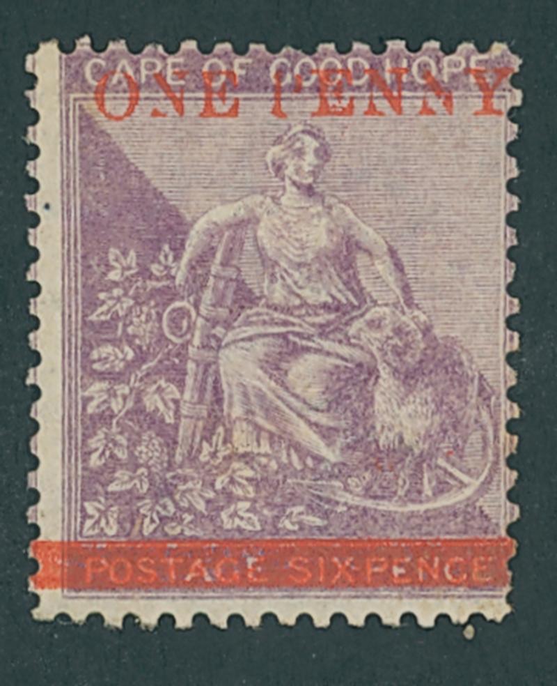 Cape of Good Hope. 1874-76 1d. surcharge on 6d. deep lilac, very faint gum crease not affecting the fine appearance; part original gum, fine and scarce. B.P.A. Certificate (2004). S.G. 32, £900 (Image1)