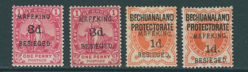 Cape of Good Hope. Mafeking Siege. 1900 mint/ unused group (8) comprising 1d. on ½d green (two of each type), 3d. on 1d. carmine (2) and 1d. on ½d. vermilion (2), all with minor imperfections, some with original gum. S.G. 1-3, 6, £2,900+ (Image1)