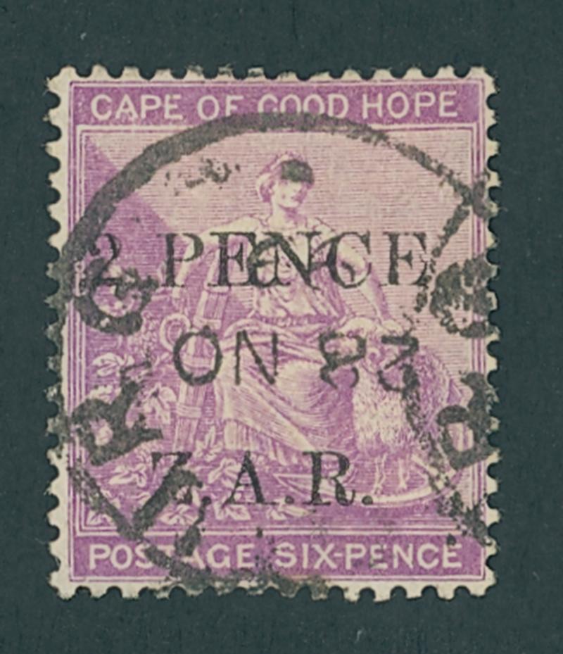 Cape of Good Hope. Boer Occupation of Vryburg. 1899 (25 Nov.) 2d. on 6d. mauve, used with part 'vryburg/ 28 no/ 99' c.d.s., fine. Sismondo Certificate (2009). S.G. 3, £600 (Image1)
