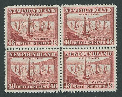 Barbados 1875-81 perf. 14, 1/- dull mauve, a block of four from the left of the sheet, large part original gum; a very fine and rar... (Image1)