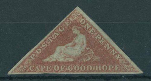 Cape of Good Hope 1853 (1 Sept.) Paper Deeply Blued 1d. brown-red on slightly blued paper, good to large margins and with large part... (Image1)