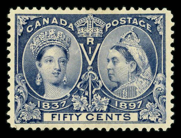 1897, Queen Victoria Jubilee, 50¢ ultramarine (Scott 60), disturbed o.g., Very Fine. Scott $375. (Image)