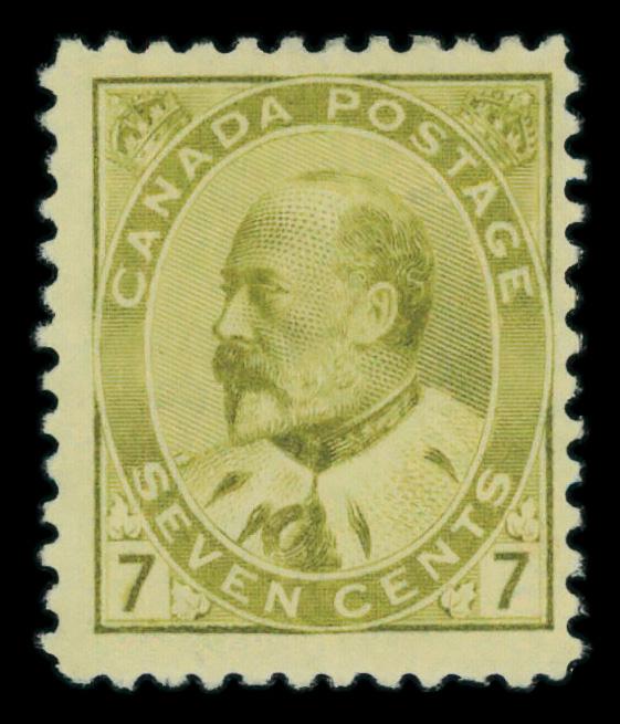 1903, King Edward VII, 7¢ olive bister (Scott 92), o.g., lightly hinged, Fine. Scott $225. (Image)
