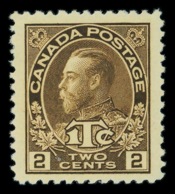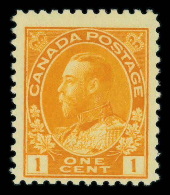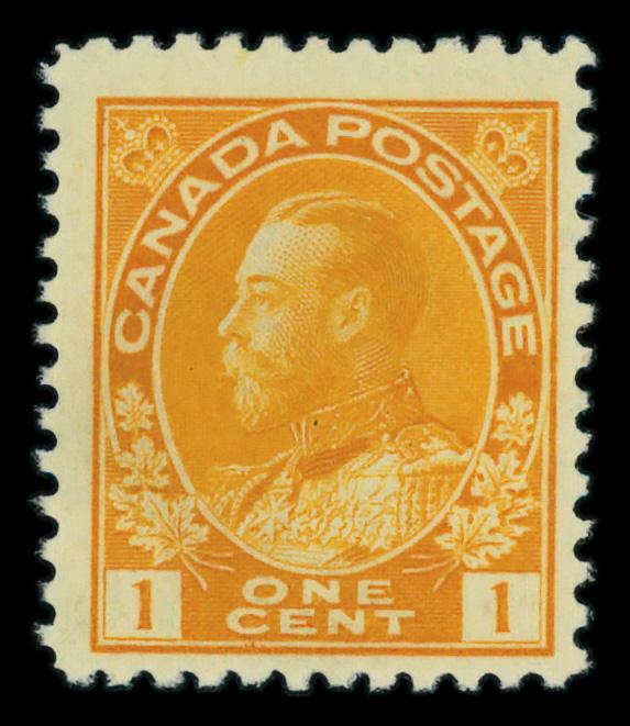 1922, King George V "Admiral", 1¢ yellow, wet printing, Die I (Scott 105), o.g., lightly hinged, Fine. Scott $30. (Image)