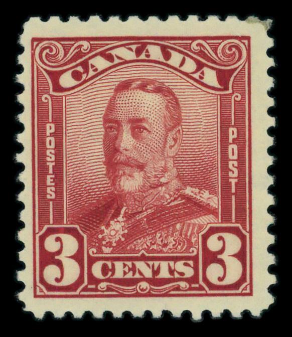 1928, King George V "Scroll", 3¢ dark carmine (Scott 151), o.g., very lightly hinged, Very Fine. Scott $28. (Image)