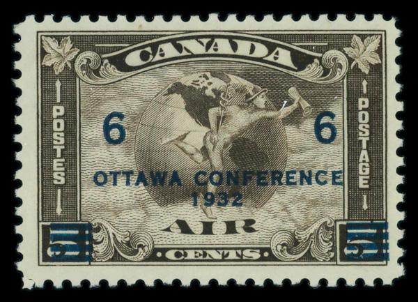 Airmail, 1932, Ottawa Conference, 6¢ on 5¢ olive brown (Scott C4), o.g., never hinged, Fine to Very Fine. Scott $65. (Image)