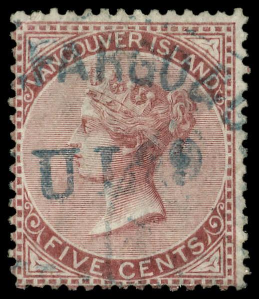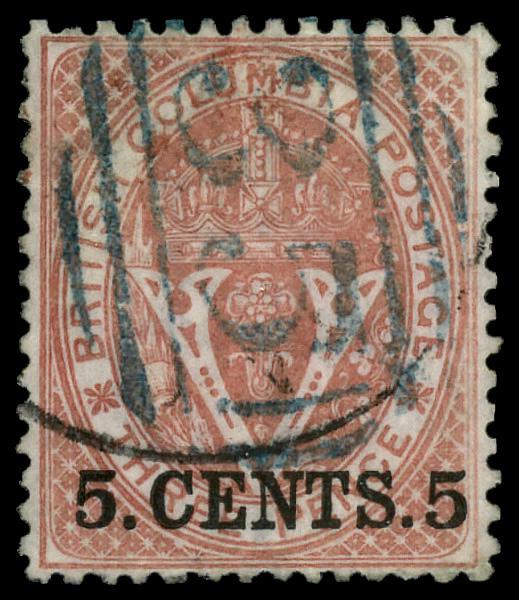 1869, Seal of the Colony, 5¢ on 3d bright red, perf. 14 (Scott 9), Very Fine. Scott $250. (Image)