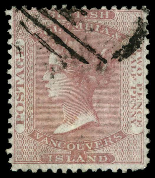 1860, Queen Victoria, 2½d dull rose, perf. 14 (Scott 2), Very Good to Fine. Unitrade 2; C$350 ($260). Scott $240. (Image)