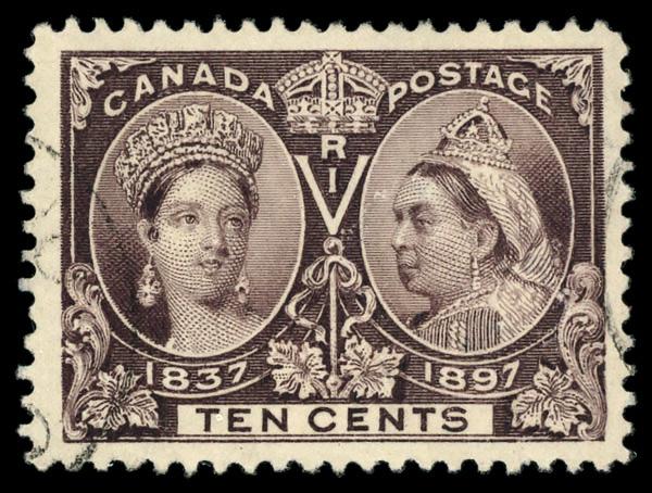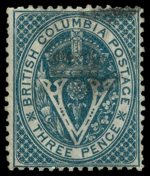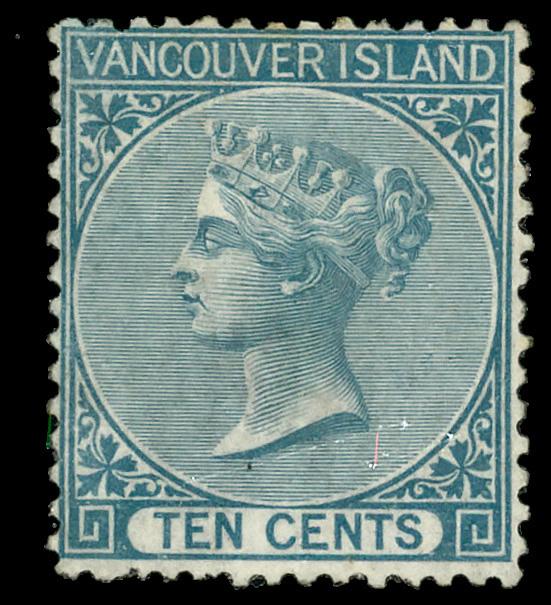 1865, Queen Victoria, 10¢ blue, perf. 14 (Scott 6), disturbed o.g., Fine to Very Fine. Unitrade 6; C$500 ($370). Scott $500. (Image)