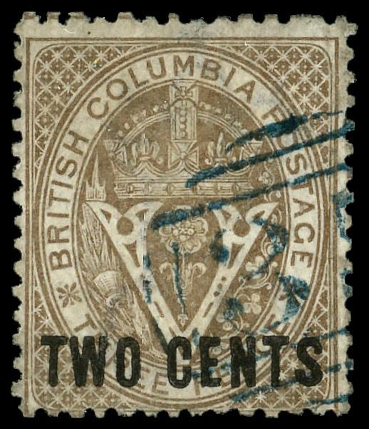 1867, Seal of the Colony, 2¢ on 3d brown, perf. 14 (Scott 8), Fine to Very Fine. Scott $150. (Image)