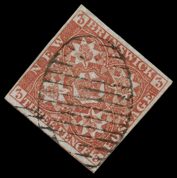 1851, 3d red (Scott 1), Very Fine. Scott $575. (Image)