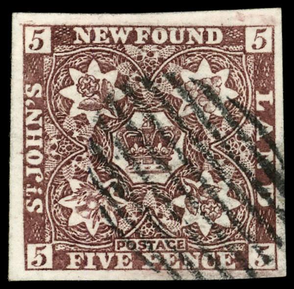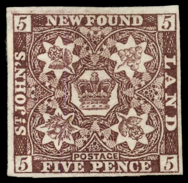1857, 5d brown violet (Scott 5), unused without gum, Very Fine. Scott $325. (Image)