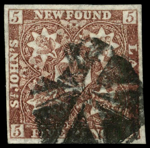 1860, 5d venetian red (Scott 12A var), Very Fine. Unitrade 12Aii; C$175 ($130). (Image)