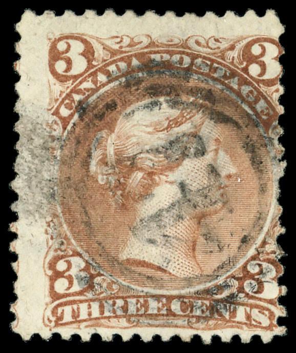1868, Large Queen, 3¢ red, watermarked (Scott 25a), #47 Three Rivers cancel, Very Good. Scott $400. (Image)