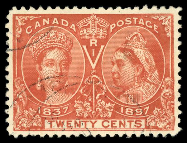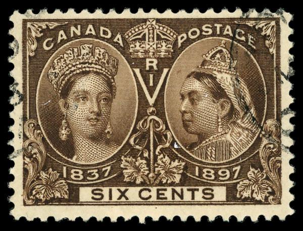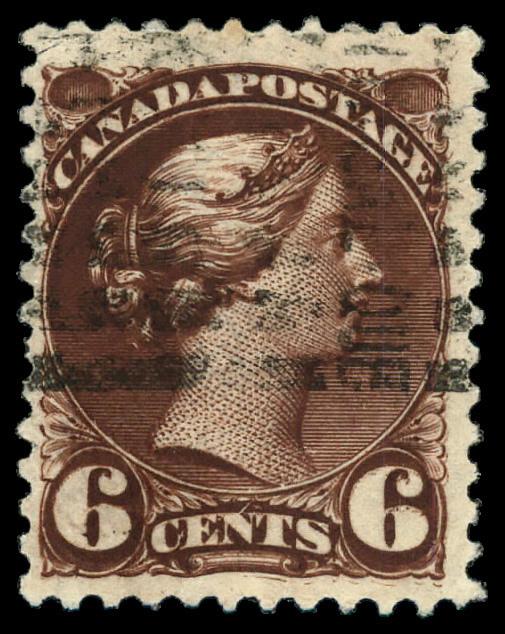 1888, Small Queen, 6¢ red brown, major re-entry (Scott 43), Fine. Unitrade 43ii; C$75 ($60). (Image)