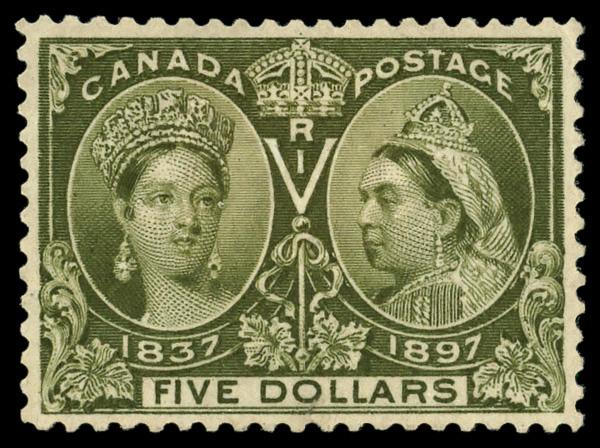 1875, Large Queen, 5¢ olive green, perf. 11½ (Scott 26), o.g., never hinged, 3 large even margins, Very Fine to Extremely Fine. Scott $200. (Image)