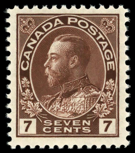 1924, King George V "Admiral", 7¢ red brown, dry printing (Scott 114), o.g., never hinged, Very Fine. Scott $65. (Image)