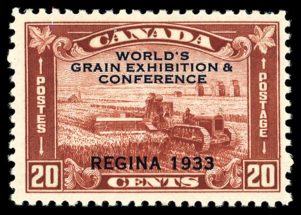 1933, 20¢ Grain Exhibition, broken 'X' variety (Scott 203), o.g., never hinged, Fine to Very Fine. Unitrade 203i; C$150 ($110). (Image)