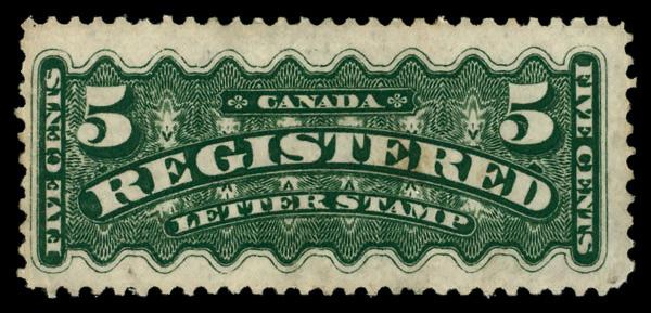 Registry, 1875, 5¢ dark green (Scott F2), disturbed o.g., Fine to Very Fine. Scott $140. (Image)