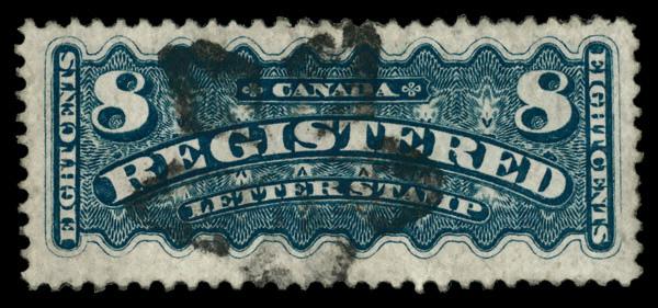 Registry, 1876, 8¢ dull blue (Scott F3), Fine to Very Fine. Scott $330. (Image)