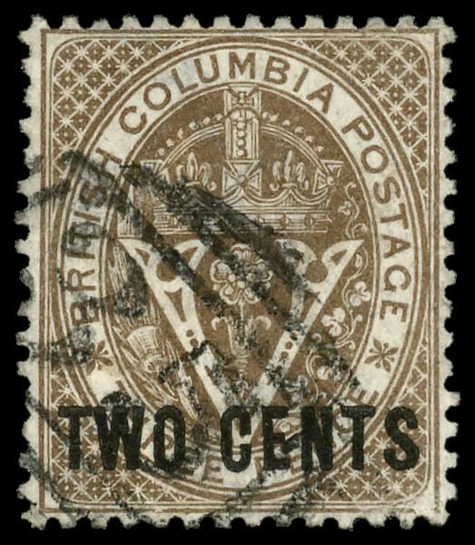 1867, Seal of the Colony, 2¢ on 3d brown, perf. 14 (Scott 8); tiny facial scuff LR, Very Fine. Scott $150. (Image)