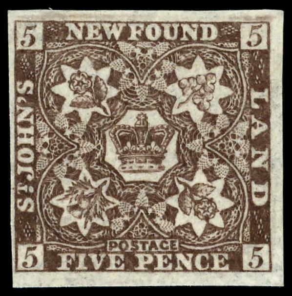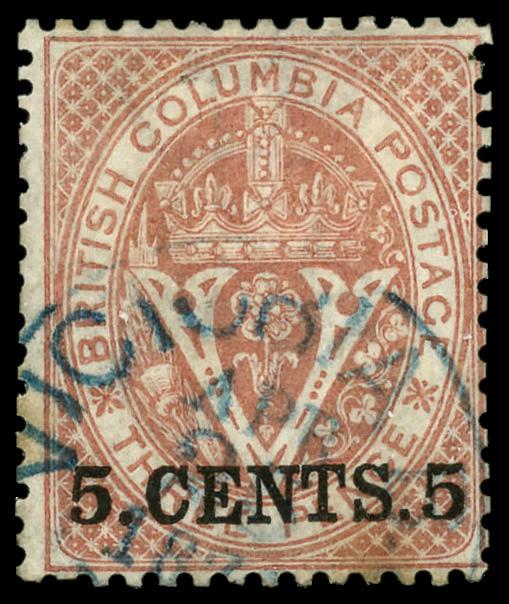 1869, Seal of the Colony, 5¢ on 3d bright red, perf. 14 (Scott 9), Fine to Very Fine. Scott $250. (Image)