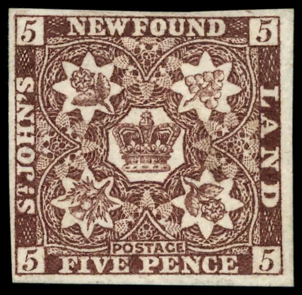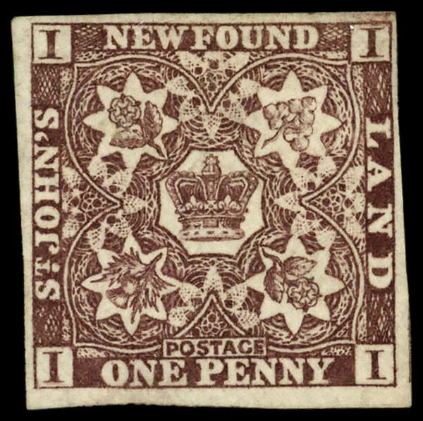 1857, 1d brown violet (Scott 1), o.g., hinge remnants (owner's handstamp on gum), Fine to Very Fine. Scott $125. (Image)