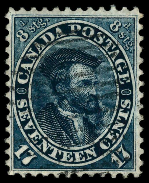 1859, Jacques Cartier, 17¢ blue (Scott 19), Very Fine. Scott $225. (Image)
