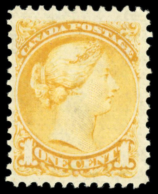 1870, Small Queen, 1¢ yellow (Scott 35), o.g., lightly hinged, Fine to Very Fine. Scott $45. (Image)