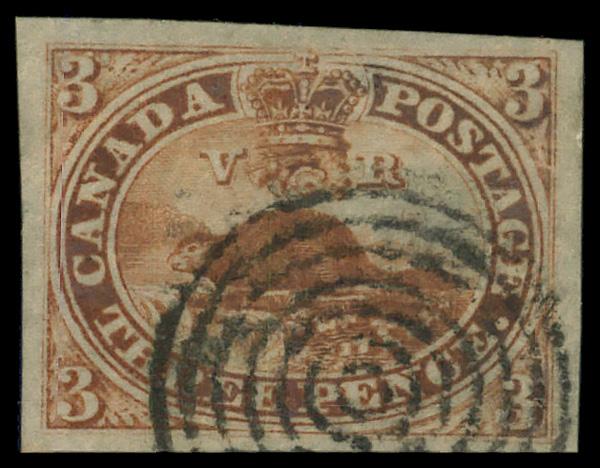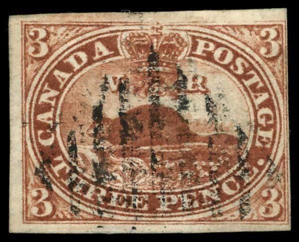 1852, Beaver, 3d red, on wove paper, imperforate (Scott 4), Fine. Scott $200. (Image)