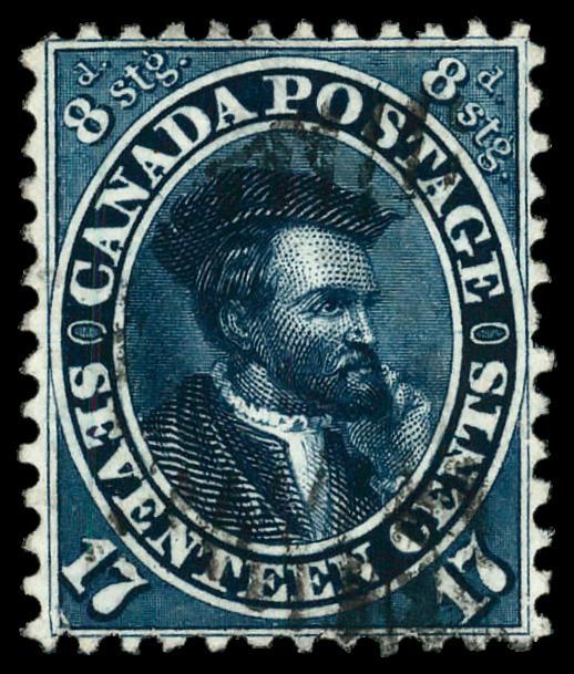 1859, Jacques Cartier, 17¢ blue (Scott 19), Very Fine. Scott $225. (Image)