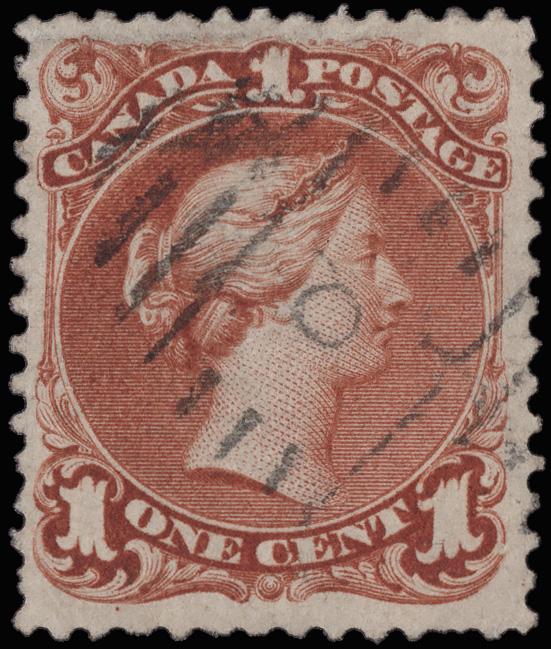 1868, Large Queen, 1¢ brown red (Scott 22), fresh and well centered with a neat cancel, Very Fine. Scott $150. (Image)
