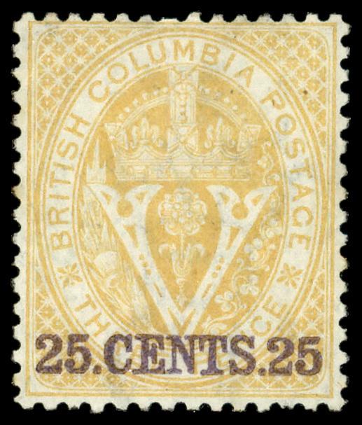 1869, Seal of the Colony, 25¢ on 3d orange, perf. 14 (Scott 11), unused without gum, Fine to Very Fine. Scott $400. (Image)