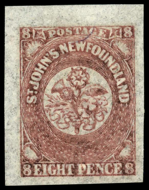 1861, 8d rose (Scott 22), corner margin single, o.g., hinge remnant, Very Fine. Scott $85. (Image)