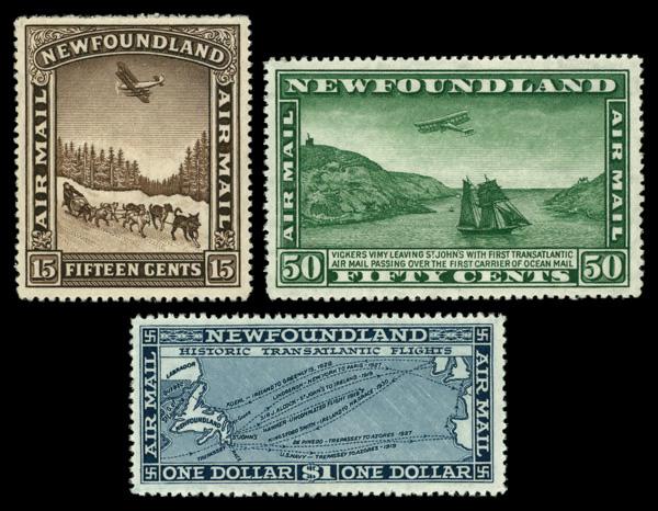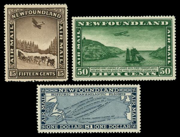 Airmail, 1931, 15¢-$1 Pictorial issue complete, watermarked (Scott C9-C11), o.g., never hinged, Very Fine. Scott $260. (Image)