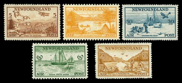 Airmail, 1933, 5¢-75¢ Labrador complete (Scott C13-C17), set of 5, o.g., never hinged (75c VLH), Extremely Fine. Scott $235. (Image)