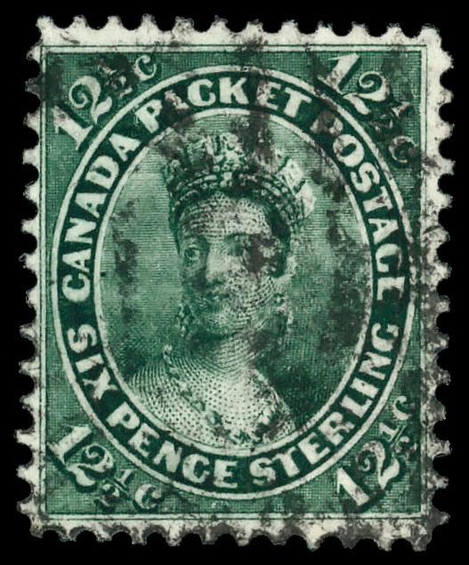 1859, Queen Victoria, 12½¢ blue green (Scott 18a), Fine. Scott $135. (Image)