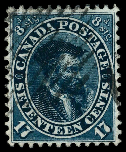 1859, Jacques Cartier, 17¢ blue (Scott 19), Very Fine. Scott $225. (Image)