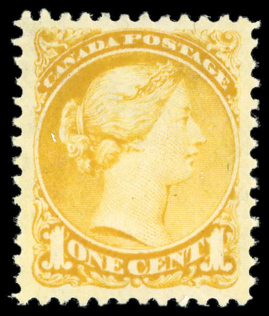 1870, Small Queen, 1¢ yellow (Scott 35), o.g., hinge remnant, Very Fine. Scott $45. (Image)